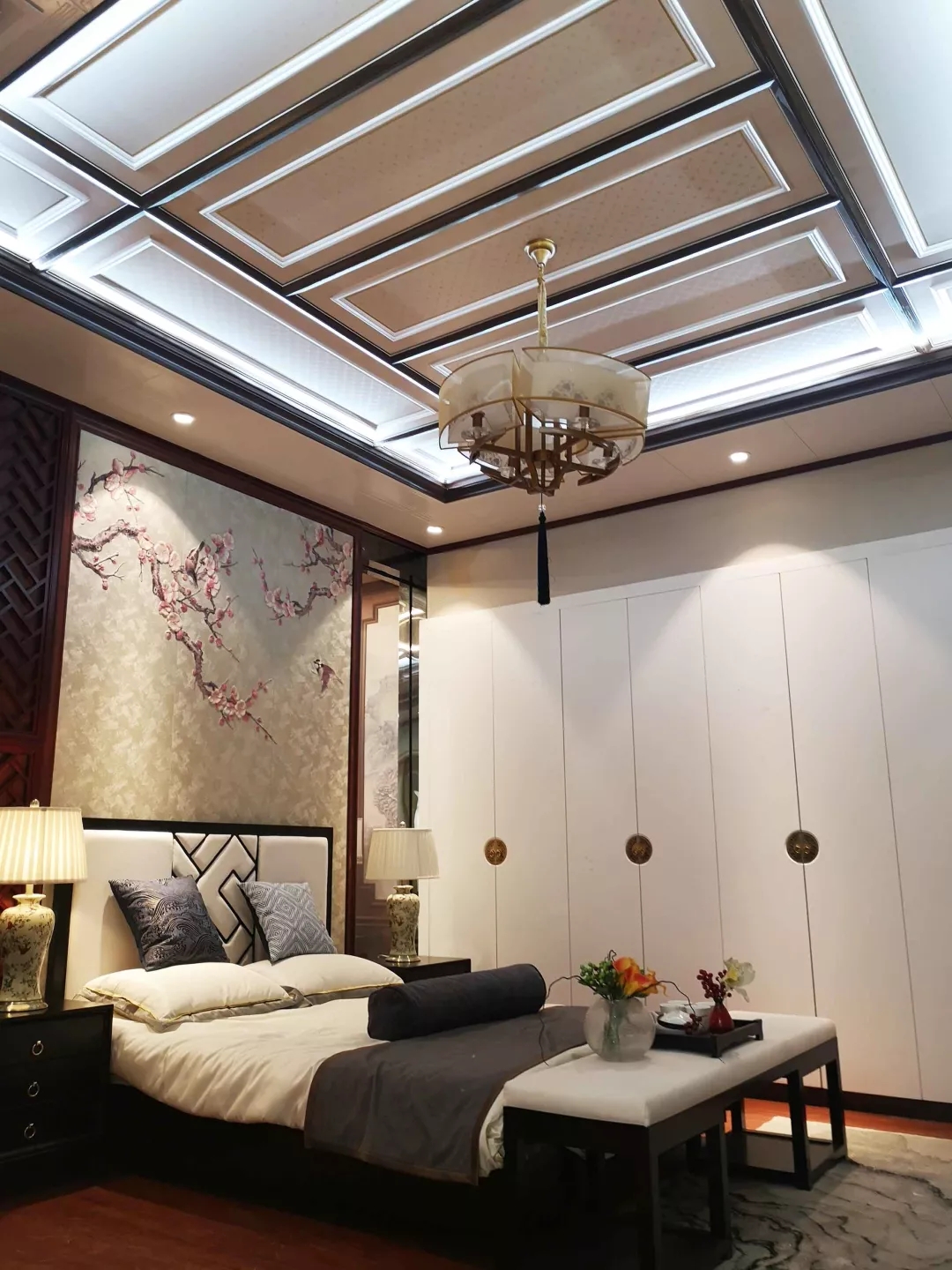 大規(guī)格安裝,從視覺上給人一種延伸擴(kuò)大的感覺,使空間更顯開闊,成為不少別墅豪宅的首選。在產(chǎn)品設(shè)計(jì)上,大規(guī)格吊頂大板因?yàn)閱纹娣e較大,可以承載的紋理設(shè)計(jì)元素更多,因此裝修出來的整體空間紋理圖案效果更加完整和立體,板面所體現(xiàn)的細(xì)節(jié)也更加豐富。